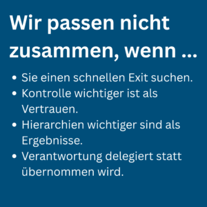 - Der Charakter Ihrer Firma bleibt erhalten – Identität vor Integration.